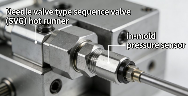 1. 다중 구역 독립 정밀 온도 제어 기술 과제: 구역 전반에 걸쳐 벽 두께가 크게 변화하는 복잡한 제품에는 수축에 대한 별도의 온도 보상이 필요합니다. 감열성 재료(예: PC, PMMA)는 온도 변동에 극도로 민감합니다. 해결책: "노즐당 독립적인 온도 제어" 또는 "다중 세그먼트 노즐 온도 제어" 시스템을 구현합니다. PID 적응 알고리즘과 결합된 고응답, 안정성이 뛰어난 가열 코일 및 열전대를 활용하여 각 제어 지점의 온도 변동을 ±0.5°C 이내로 엄격하게 제어하여 고품질 성형을 위한 기본적인 열 환경을 보장합니다. 2. 동적 압력 및 시퀀스 제어 시스템 과제: 다중 캐비티 금형의 캐비티 전반에 걸쳐 균일하지 않은 충전 또는 웰드 라인을 제거하고 강도를 보장하기 위해 특정 충전 순서가 필요한 제품. 해결책: "SVG(순차 밸브 게이트) 핫 러너"를 "성형 내 압력 센서"와 통합합니다. 각 밸브 게이트의 개방 순서와 스트로크를 프로그래밍 방식으로 제어하여 용융 흐름 경로를 적극적으로 안내합니다. 실시간 캐비티 압력 피드백과 결합하여 사출 매개변수를 조정함으로써 진정한 과학적인 성형을 달성합니다.